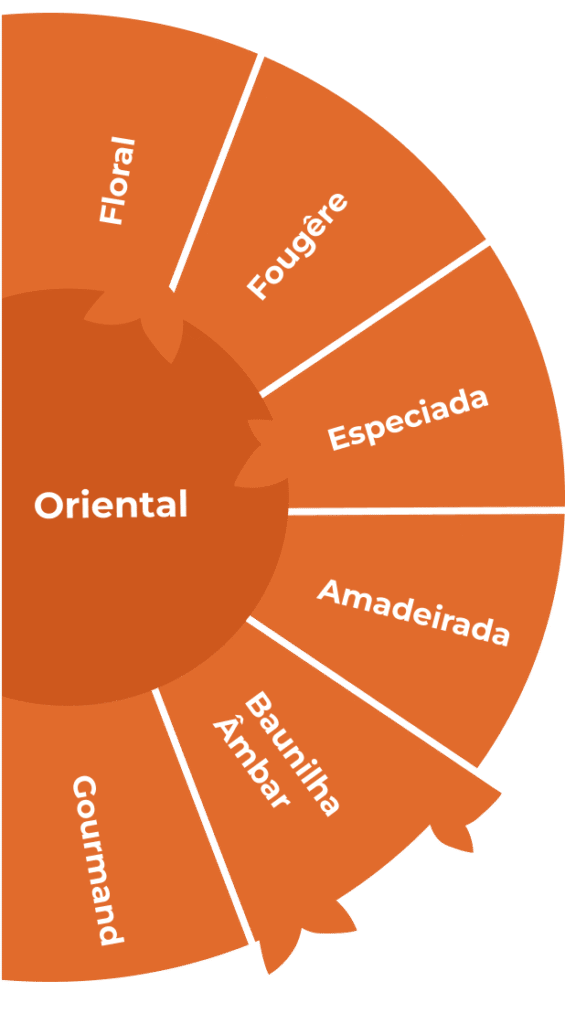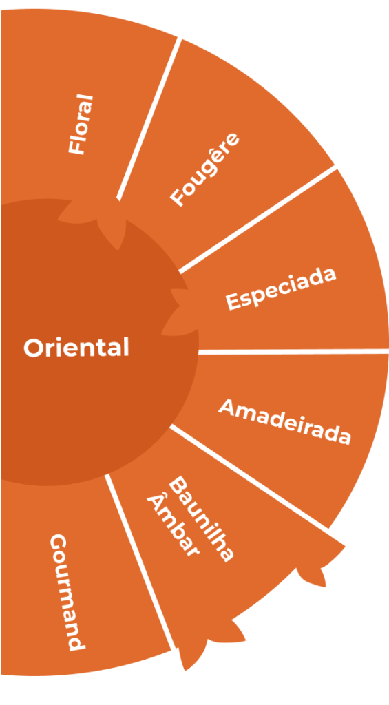 Imagine uma viagem sensorial por mercados de especiarias, templos de resinas aromáticas e jardins exóticos. Assim é a Família Oriental: opulenta, exótica e sensual. Nascida com o icônico Shalimar, de Guerlain, em 1925, esta família é conhecida por suas fragrâncias ricas, com notas marcantes de baunilha, âmbar, especiarias (como canela e cravo), madeiras nobres e toques gourmands (como caramelo e chocolate). É a maior e uma das mais fascinantes famílias deste Guia, reunindo perfumes que agradam a todos os gêneros. Grande parte dos perfumes árabes, que viraram hit nos últimos anos, se concentram nesta família.